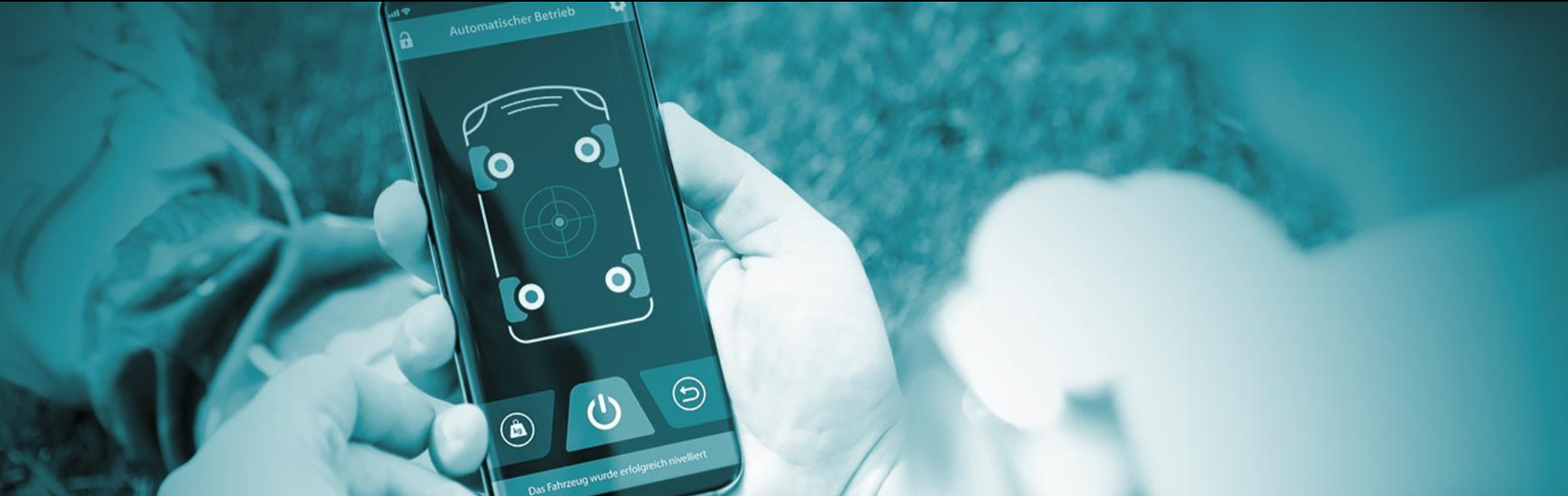 Aplikace pro chytré telefony nabízí intuitivní uživatelské rozhraní, které umožňuje snadné ovládání přes dotykovou obrazovku (automatické/manuální) a sledování nivelace. Aplikace pro chytré telefony také nabízí významnou výhodu v podobě vylepšeného grafického ovládání a ještě přehlednější prezentace funkcí. Stavové a chybové zprávy se zobrazují také jako textové zprávy. Aplikaci lze dále použít k nastavení imobilizéru, přístupu k živým datům a protokolu událostí a ke konfiguraci různých nastavení, jako jsou jazyky, kalibrace, definice PINu atd.