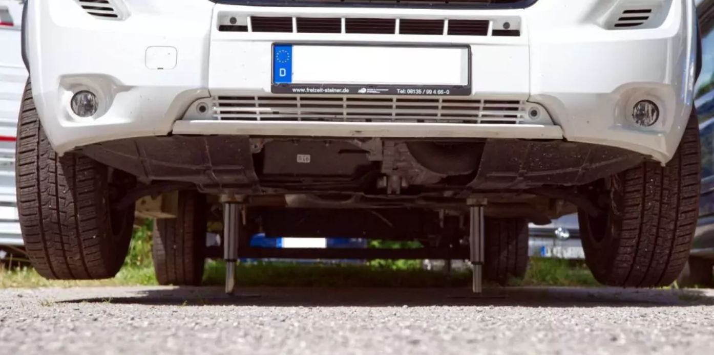 Nový systém Goldschmitt je plně automatický systém se čtyřmi zvedáky, který stisknutím tlačítka vyrovná a bezpečně podepře obytné vozy a dodávky.
