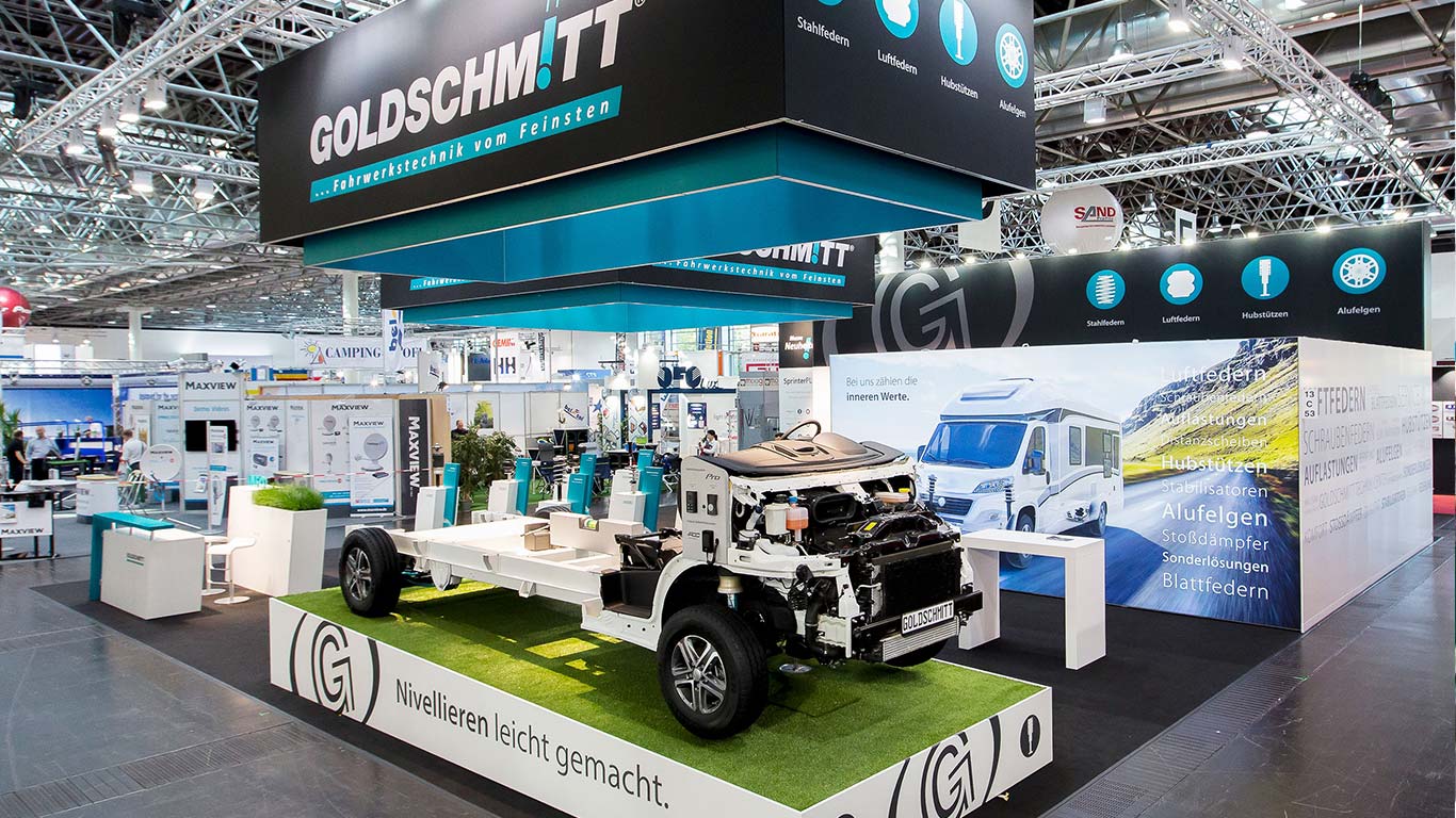 Nový systém Goldschmitt je plně automatický systém se 4 zvedáky, který vyrovnává a stabilizuje obytné vozy a dodávky stisknutím tlačítka.